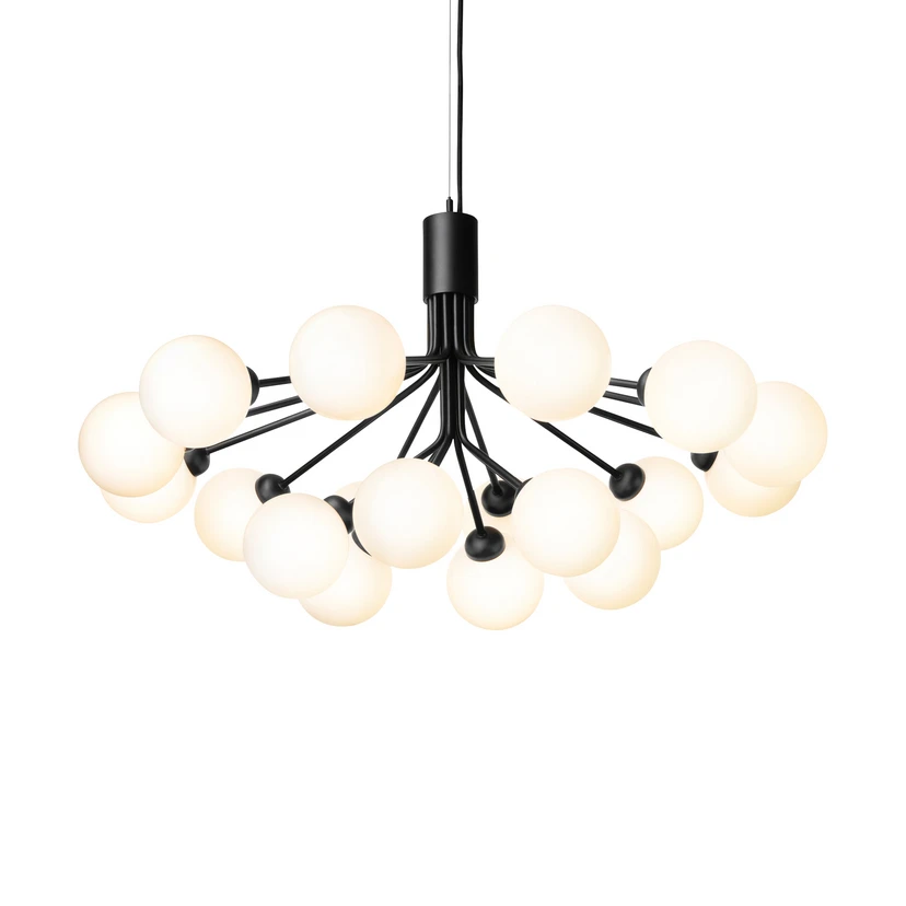 Candelabrul Apiales 18 Satin Black/Opal White este proiectat de Sofie Refer și inspirat de floarea cunoscută în mod obișnuit sub numele de hogweed. Lampa este concepută pentru a capta atenția indiferent de cine intră în cameră. Din punct de vedere al măiestriei, acest produs este de cea mai înaltă calitate, datorită sticlei suflate manual în forme moi, organice, care creează o lumină minunată și un sentiment confortabil de căldură.