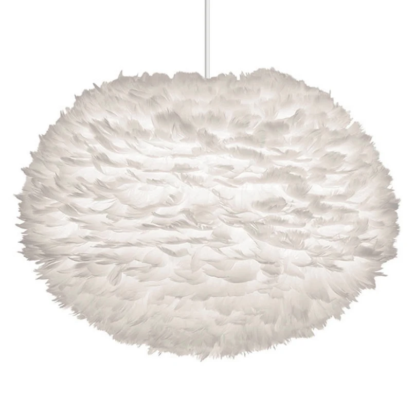 --Lămpile Eos sunt realizate din pene de gâscă rămase de la sacrificare, care altfel ar fi aruncate sau folosite pentru perne. De fiecare dată când Umage achiziționează pene, se asigură că obține o documentație completă care atestă că toate penele provin de la gâște moarte și că gâștele sunt sacrificate în conformitate cu reglementările UE. Toate penele sunt spălate, fierte, uscate și tratate înainte de a fi transformate în frumoasele lămpi Eos. Umage pune un accent deosebit pe mediu și pe bunăstarea animalelor, așa că puteți cumpăra lampa Eos cu conștiința împăcată!