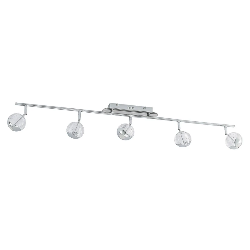 Kilio 5 Plafoniera cromată este o îmbinare frumoasă de forme, culori și materiale într-un design estetic puternic al lămpii, care își îmbogățește împrejurimile cu grație elegantă. Rama metalică lucioasă și strălucitoare a lămpii are un design subțire, care se potrivește armonios cu abajurul voluminos din sticlă, care este transparent și, în același timp, are o structură fascinantă cu bule interne. Cu toate acestea, abajurul este prevăzut cu un element metalic în formă plutitoare, care se potrivește cu rama și demonstrează un design bine gândit.