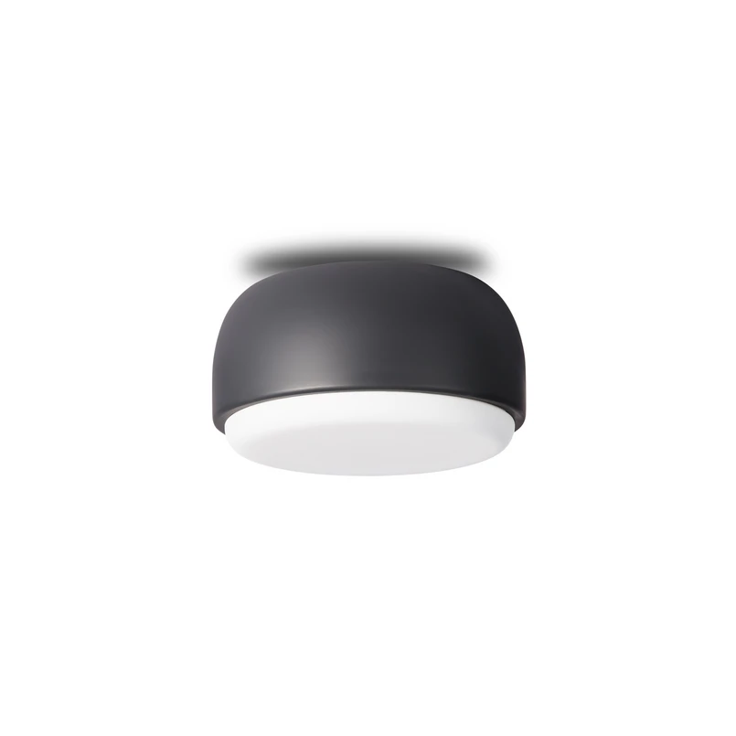 Lampa de tavan Over Me 20 Dark Grey este o lampă de tavan/perete simplă, formată dintr-un cadru metalic neted și un disc de sticlă luminat. Lampa oferă o lumină frumos difuză și, datorită aspectului său minimalist și flexibilității, Over Me este un supliment natural la designul interior modern.